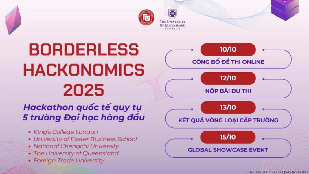 Borderless Hackonomics 2025 – Hackathon toàn cầu cùng Đại học Ngoại thương (FTU) – Đại học Queensland, King’s College London, University of Exeter Business School, National Chengchi University
