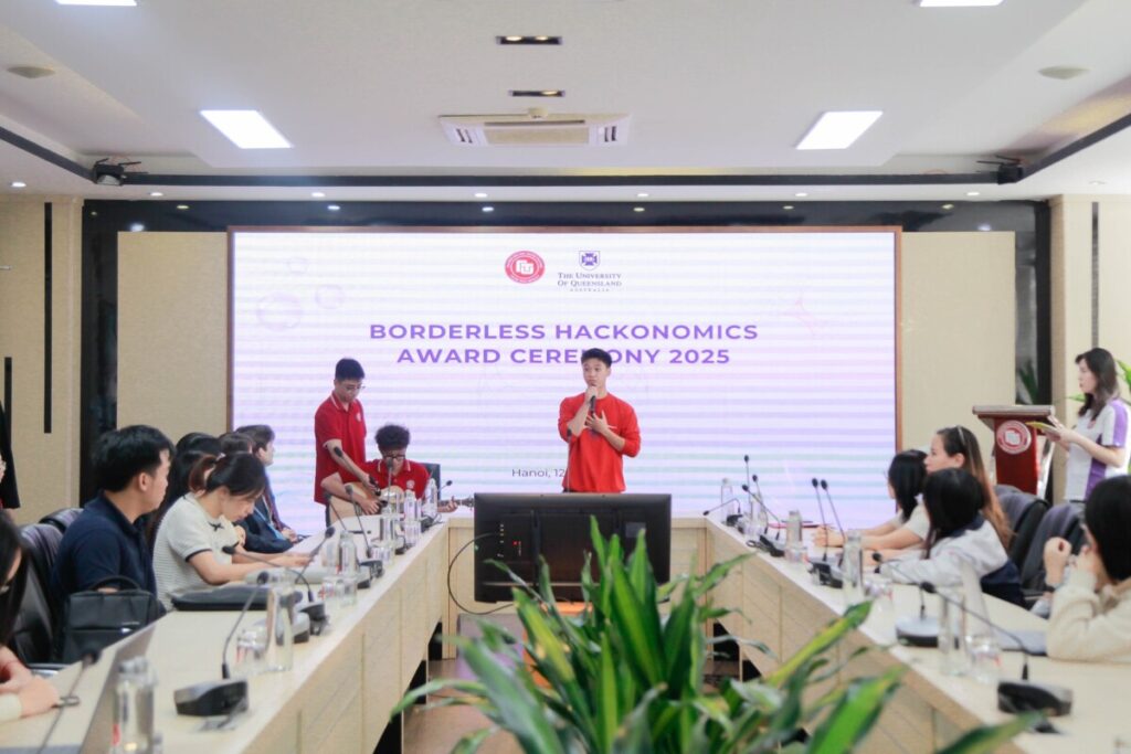 Trong phần khai mạc, PGS, TS Cao Đinh Kiên – Trưởng phòng Hợp tác quốc tế, đại diện Trường Đại học Ngoại thương – gửi lời chào mừng và nhấn mạnh ý nghĩa của cuộc thi Borderless Hackonomics trong việc thúc đẩy kết nối học thuật và hợp tác quốc tế giữa các trường tham dự. PGS, TS Cao Đinh Kiên cũng ghi nhận nỗ lực của sinh viên và sự đồng hành của Deloitte cùng Đại học Queensland (UQ). Tiếp đó, TS Thomas Magor, đại diện UQ, chia sẻ về tinh thần sáng tạo, tính thực tiễn của cuộc thi, đồng thời đánh giá cao chất lượng học thuật của các đội thi. Ông Joshua Appleton Miles – Giám đốc Deloitte Việt Nam – phát biểu về vai trò của Deloitte trong việc hỗ trợ phát triển tài năng trẻ và bày tỏ niềm tự hào trước tư duy toàn cầu mà sinh viên thể hiện trong cuộc thi năm nay.