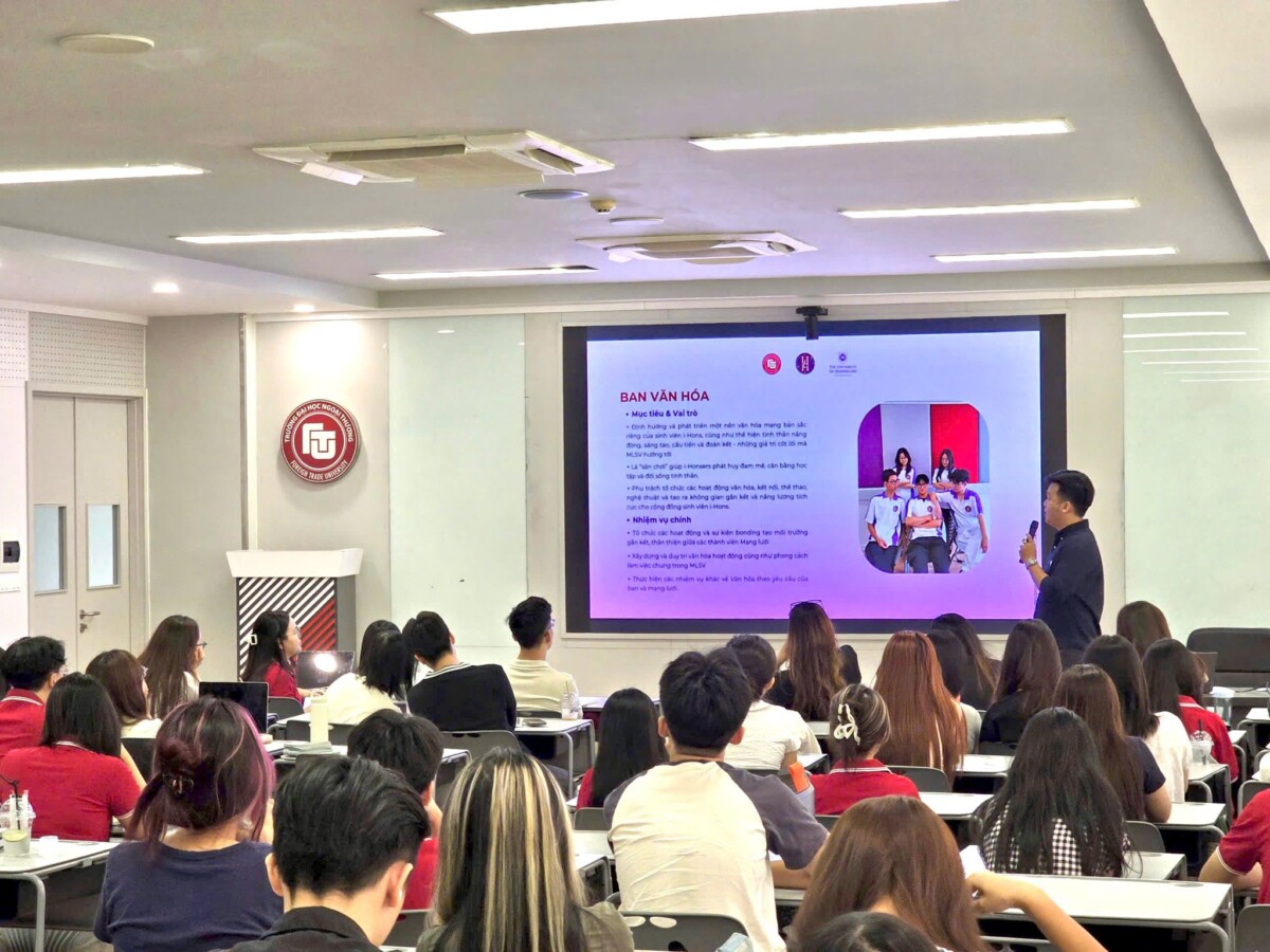 Tại chương trình, sinh viên được giới thiệu tổng quan về chương trình đào tạo, đồng thời tìm hiểu về các ban trong Mạng lưới sinh viên i-Hons – môi trường để rèn luyện, cống hiến và phát triển toàn diện cả về học thuật lẫn kỹ năng mềm.