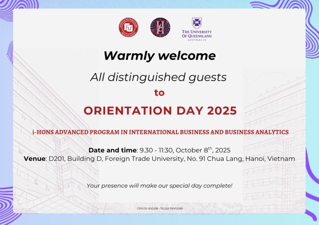 Giới thiệu Orientation Day 2025 – Chương trình Tiên tiến i-HONS ngành Kinh doanh Quốc tế và Phân tích Dữ liệu Kinh doanh