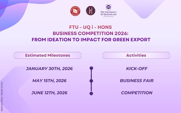 Tiếp nối thành công của mùa giải năm 2025 với nhiều dự án tiềm năng và những phần thể hiện ấn tượng từ các đội thi, FTU – UQ i-Hons Business Competition 2026 trong khuôn khổ học phần Tư duy khởi nghiệp và Thiết kế ý tưởng (Entrepreneurial Mindset and Ideation – EMI) chính thức trở lại, hứa hẹn mang đến một hành trình học tập và trải nghiệm thực tiễn chuyên sâu hơn cho các i-Honsers K64. Đây cũng là nơi sinh viên có cơ hội từng bước hiện thực hóa ý tưởng, rèn luyện tư duy phản biện, nâng cao kỹ năng làm việc nhóm và trình bày dự án, với sự đồng hành của mentor đến từ UQ Alumni trong suốt hành trình cuộc thi.