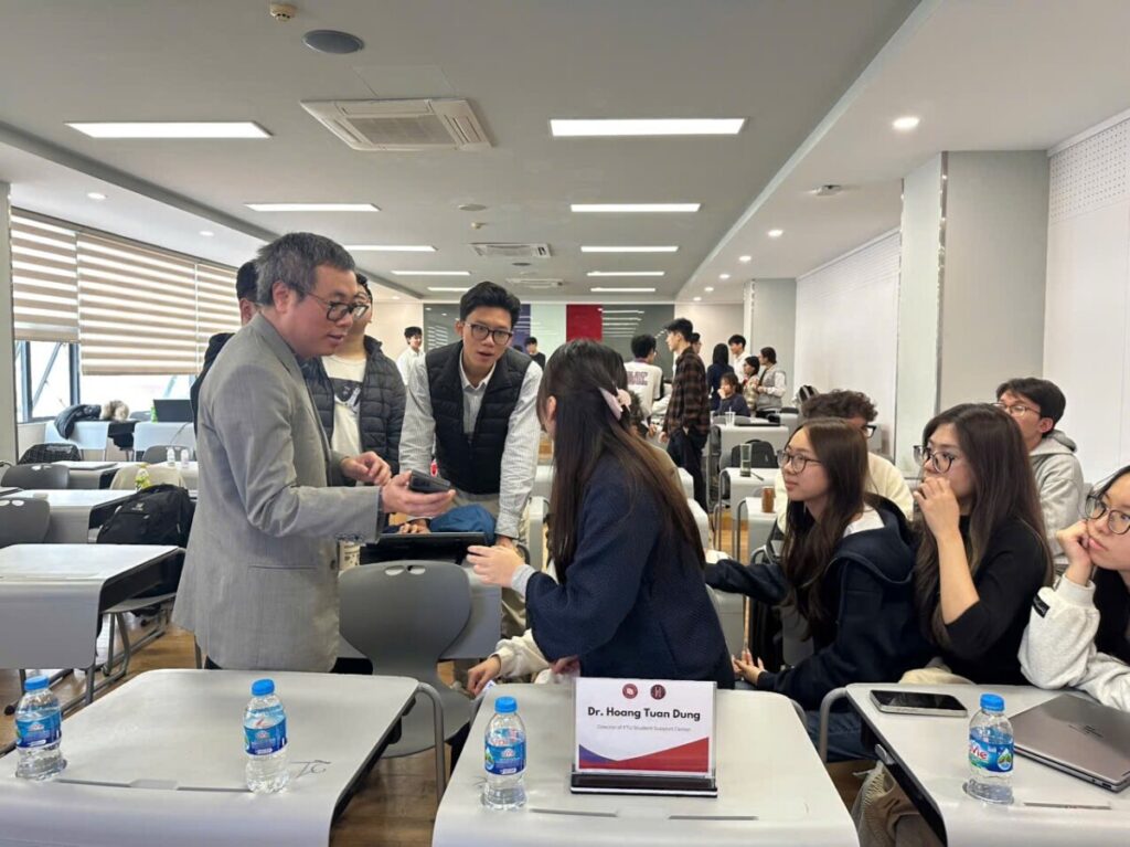Tiếp nối chương trình, trong phần định hướng mục tiêu, TS. Nguyễn Quang Huy – Giảng viên phụ trách – đã mang đến một góc nhìn sâu sắc về tư duy khởi nghiệp thông qua “Phép nhân thành công”. Thầy nhấn mạnh rằng ý tưởng sáng tạo chỉ là điều kiện cần, trong khi tính thực tiễn và khả năng thực hành mới là điều kiện đủ để tạo nên tác động thực sự. Thầy Huy khẳng định, nhân tố quan trọng nhất trong phép nhân này chính là Con người. Nếu sinh viên có ý tưởng hay, có công cụ tốt nhưng thiếu kỹ năng hành động và sự quyết tâm, thì khả năng triển khai sẽ bằng 0. Tác động thực sự lớn nhất sau cuộc thi chính là sự trưởng thành, bản lĩnh và tư duy giải quyết vấn đề của các i-Honsers khi đối mặt với thực tế.