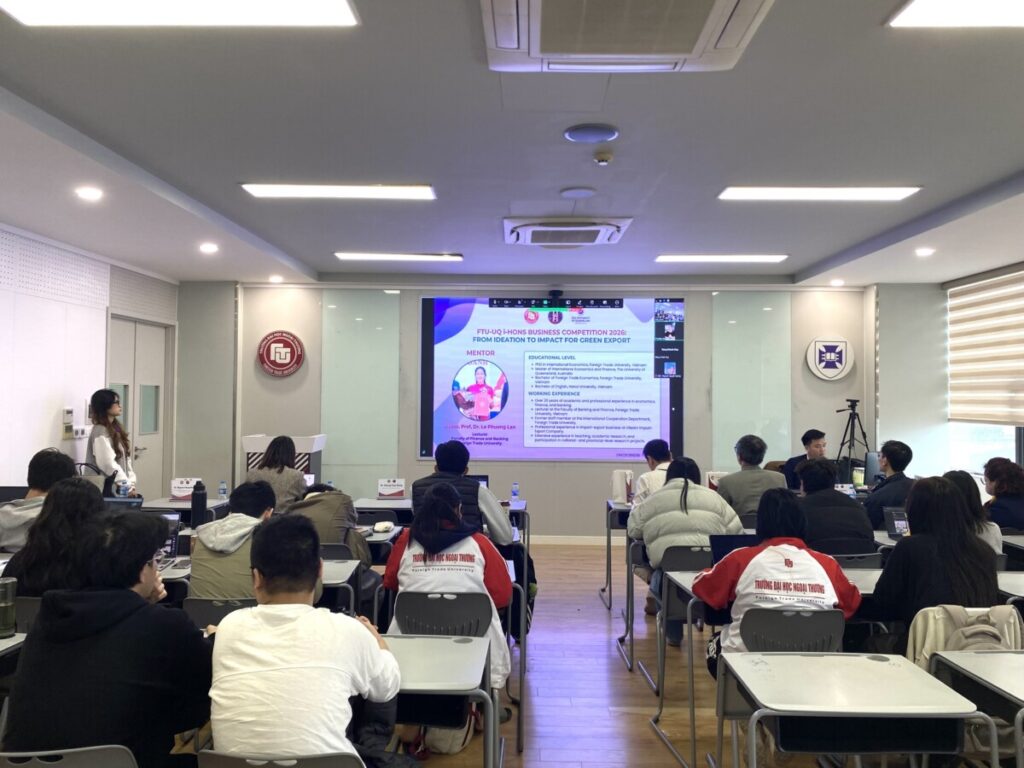 Sáng ngày 30/01 vừa qua, hành trình tìm kiếm những đại diện ưu tú cho xu hướng “Kinh doanh Bền vững” đã chính thức khởi động trong bầu không khí đầy nhiệt huyết tại Trường Đại học Ngoại thương với sự tham dự của các thầy cô, giảng viên phụ trách, các mentor giàu kinh nghiệm đến từ UQ Alumni. Với chủ đề mang tính thời đại “Green Export”, buổi Kick-off không chỉ là một sự kiện khởi đầu mà còn là lời khẳng định về tầm nhìn chiến lược của các i-Honsers trước những thách thức toàn cầu.