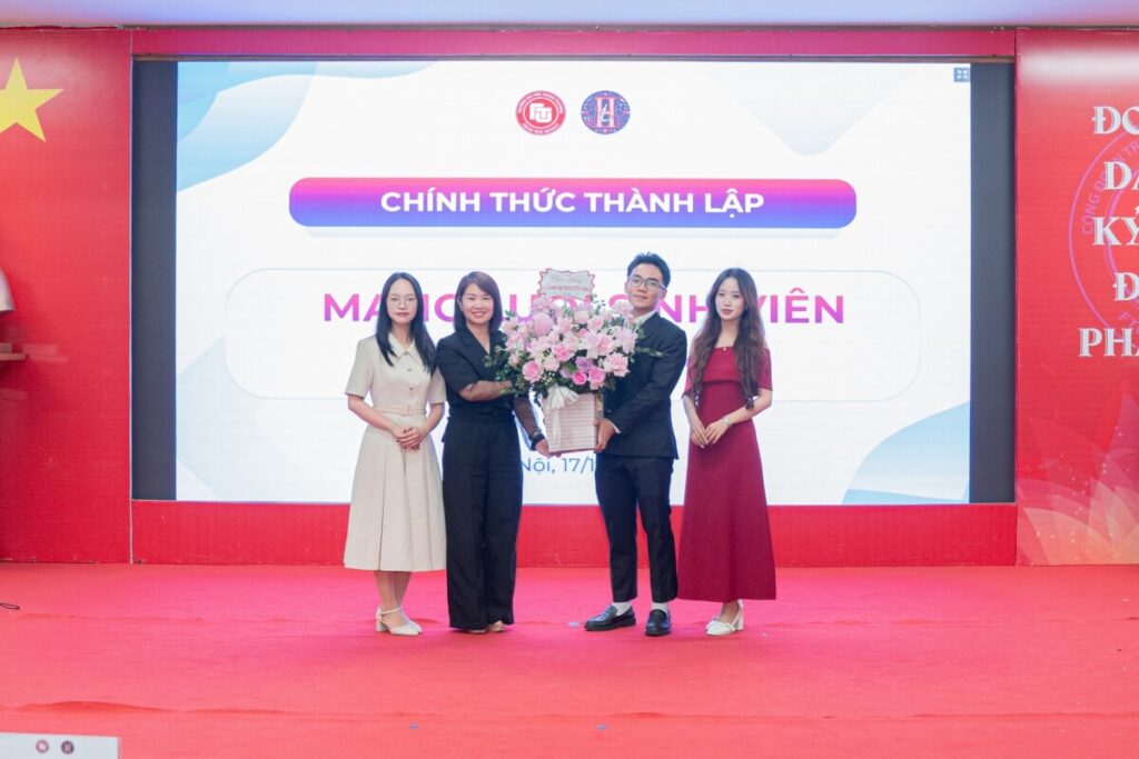 Tiếp nối chương trình là phần trao hoa và phát biểu của PGS.TS. Vũ Thị Hiền – Phó Hiệu trưởng Trường Đại học Ngoại thương. Trong phát biểu của mình, cô gửi lời chúc mừng tới sự ra đời chính thức của Mạng lưới sinh viên i-Hons, đồng thời chia sẻ những định hướng, lời khuyên sâu sắc, khích lệ tinh thần chủ động, bản lĩnh và trách nhiệm của sinh viên trong học tập, rèn luyện và hành trình hội nhập quốc tế. Những thông điệp này đã tạo động lực mạnh mẽ, củng cố niềm tin và quyết tâm của tập thể sinh viên i-Hons trong việc theo đuổi các giá trị cốt lõi của chương trình.