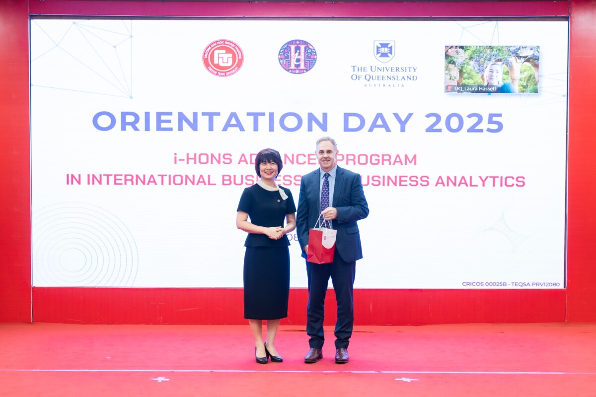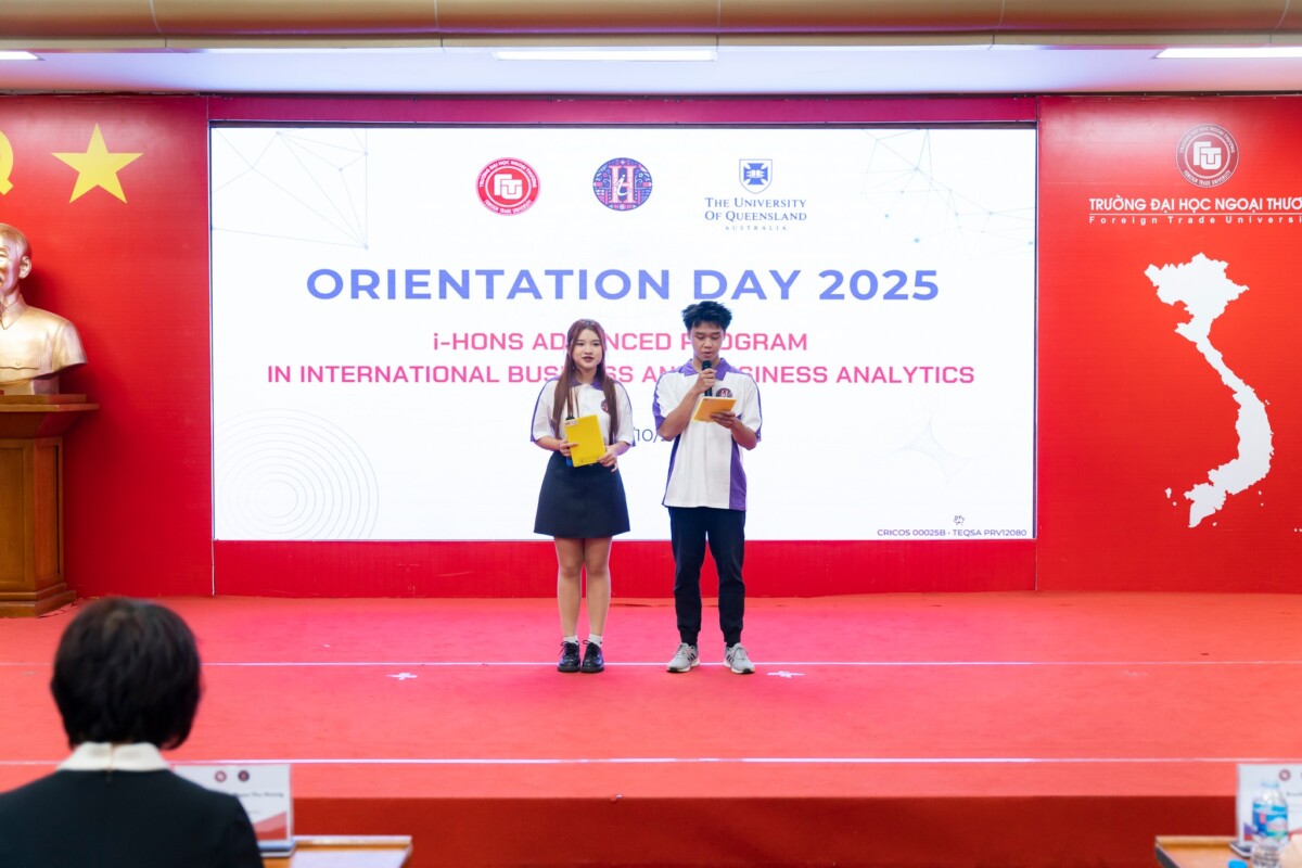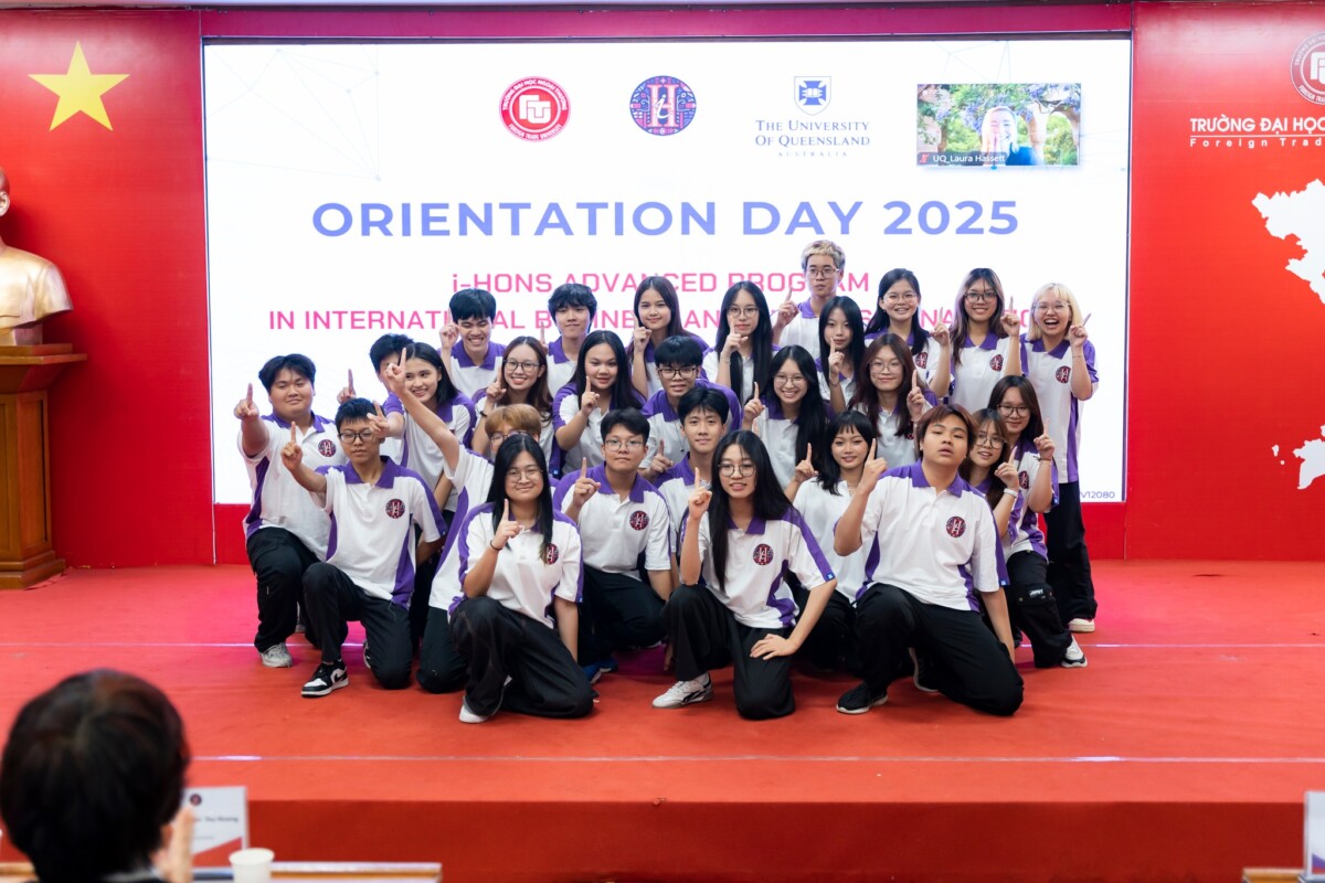 Sáng ngày 8 tháng 10 năm 2025, tại Hội trường D201 – Tòa nhà D, Trường Đại học Ngoại thương, chương trình Orientation Day dành cho tân sinh viên Chương trình tiên tiến i-Hons ngành Kinh doanh Quốc tế và Phân tích Dữ liệu Kinh doanh – hợp tác giữa Trường Đại học Ngoại thương (FTU) và Trường Đại học Queensland (UQ, Australia) – đã diễn ra thành công tốt đẹp. Sự kiện đánh dấu bước khởi đầu cho hành trình học tập mới đầy hứng khởi của các tân i-Honsers khóa 64.